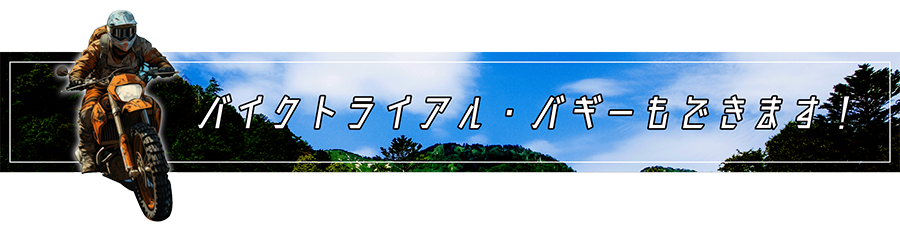 ◎オフロードバイク、バギー、サバイバルゲームのみ、キャンプのみ でもご利用可能です。